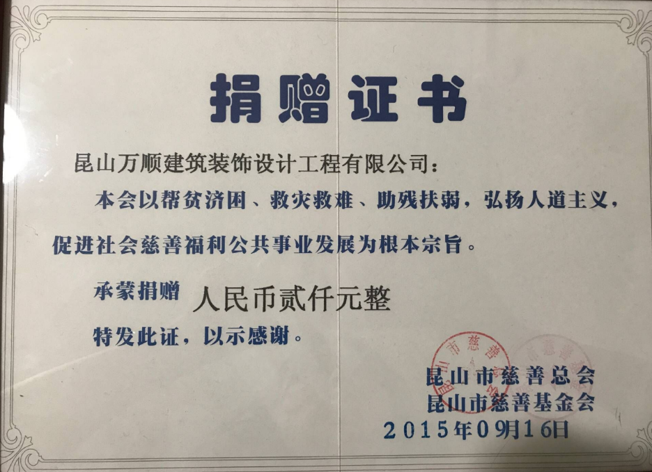 捐贈(zèng)證書
